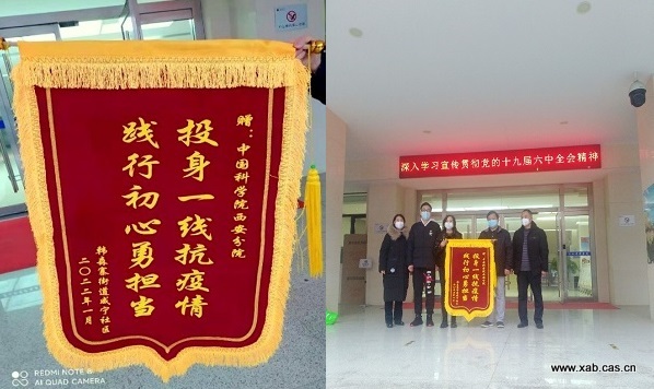 近日,西安市新城区韩森寨街道咸宁社区领导干部一行专程前来中国科学院西安分院 陕西省科学院机关赠送“投身一线抗疫情 践行初心勇担当”锦旗,以示表彰分省院机关在这场抗击新冠疫情的阻击战、歼灭战中为所在社区做出的突出贡献与科学院人的担当风范。
