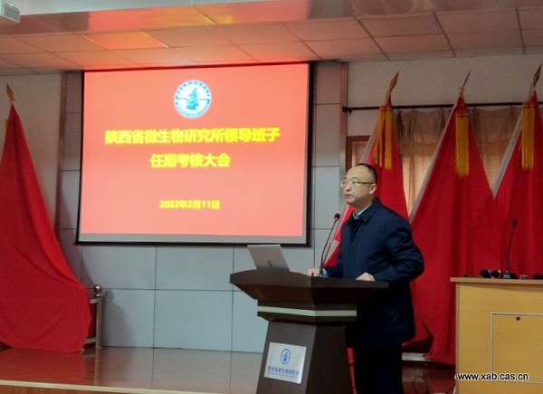 2月11日上午,陕西省微生物研究所领导班子任期考核大会召开。由陕西省科学院党组副书记詹瑞、纪检组组长康贸易带领陕西省科学院组织人事处处长周玉珍等一行8人组成的陕西省科学院考核组到研究所。研究所领导班子成员、党委委员、纪委委员、中层干部、专业技术骨干和各类职工代表等32人参加考核大会。会议由陕西省科学院党组副书记詹瑞主持。