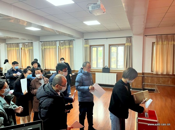 随后,周玉珍介绍领导班子任期考核暨民主推荐大会的办法与原则说明。32位参会人员填写了研究所领导班子及领导人员任期考核测评表和推荐表,并依次投票。