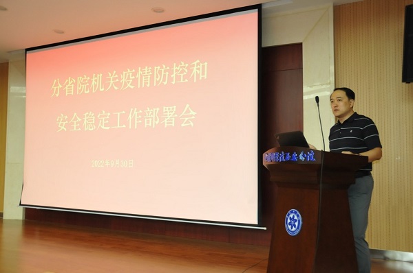 根据中科院党组、陕西省委省政府以及西安市等针对近期疫情防控和安全稳定工作的相关部署要求,9月30日上午,中科院西安分院 陕西省科学院机关召开“分省院机关疫情防控和安全稳定工作部署会”,分省院副院长、党组成员杨青春,纪检组组长、党组成员康贸易,副院长陈怡平出席会议,分省院机关全体职工参加会议。