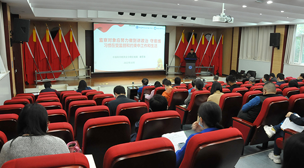 为贯彻落实党的二十大精神和持之以恒推进全面从严治党要求,强化党员干部职工廉洁自律意识,增强对党忠诚、拒腐防变的思想自觉和行动自觉,根据中科院西安分院分党组 陕西省科学院党组的部署,10月26日下午,分省院举办2022年廉政专题党课。分省院党组成员、西安分院纪检组长康贸易作题为《监察对象应努力做到讲政治守底线 习惯在受监督和约束中工作和生活》专题报告。分院各单位纪委书记、省院各单位党委书记和纪委书记、各单位纪检审计部门负责人及分省院机关全体职工参加会议。因受疫情影响,中科院山西煤化所通过视频方式参加会议。