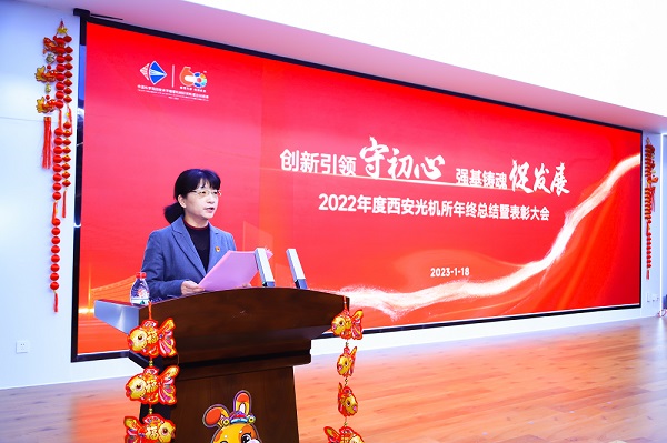 1月18日下午,西安光机所召开2022年度年终总结暨表彰大会。在所所领导班子成员、党委委员、纪委委员、总师、专务、所务委员,职工代表,研究部、室负责人,机关全体人员及受表彰对象欢聚一堂,共庆佳绩,喜迎新春。会议由纪委书记梁峻主持。