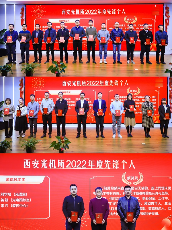 为树立典型、鼓舞斗志,进一步激励全所党员和广大职工弘扬和传承“西光精神”,在研究所科技创新、管理保障和党建工作中取得更大成绩,大会对2022年度涌现出的先进团队和先进个人进行了表彰。