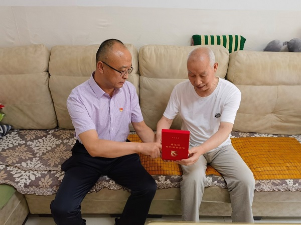 为弘扬中国共产党的光荣传统和优良作风, 致敬老党员,增强老党员的荣誉感、归属感,6月30日,中国科学院西安分院分党组 陕西省科学院党组副书记、机关党委书记詹瑞,走访慰问分省院机关“光荣在党50年”老党员。