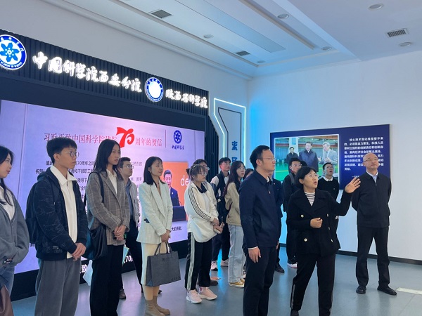詹瑞向参观中国科学院西安分院 陕西省科学院(以下简称“分省院”)科技成果展厅的西安交大师生代表,介绍了分省院发展历史、人才培养、科研创新、成果转化等,希望以此次交流为契机,依托双方优势资源,持续深化与西安交通大学在人才培养与引进、科学研究与应用等方面的深度合作,实现校院高质量共赢发展。
