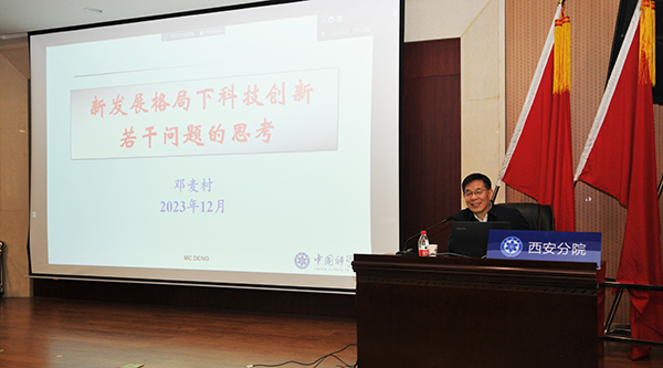 邓麦村在题为“新发展格局下科技创新若干问题的思考”的专题报告中,从科研人员立足科技创新看发展、我国科技高水平自立自强的现状和原因、需要从经济发展、科技力量部署、结构性改革等方面发现问题,以及通过对分析科技成果转化不足、“卡脖子”问题难以解决、数字化转型挑战等问题原因,就找出其短板,明确如何弥补短板,作了系统、深刻的讲解和详细阐述。邓麦村在报告最后强调表示,科技支撑创新驱动发展任重道远,科技创新必须坚持需求导向、问题导向和市场导向,引领社会需求,从而实现中国科技引领,建设创新强国。