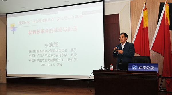 张志强作题为“新科技革命的挑战与机遇”的报告。他基于对世界科技发展态势和趋势的系统性梳理和分析,展示介绍了变革性发展主要科技领域、战略引领性前沿科技方向、潜在颠覆性前沿技术领域和科技变革的新范式新规律等新科技革命的态势和趋势,并从世界百年大变局、科技增强时代来临的角度分析我国科技发展面对的国际长期全面战略竞争和风险挑战,引发关于如何建设完善的高效能科技领域创新体系、抓住新科技革命的战略机遇的新思考。