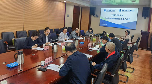 4月7日,中国科学院大学陕西招生组召开2024年度本科招生工作启动会。中国科学院西安分院院长张首刚,副院长陈怡平,西安分院科技合作处处长孙凯,副处长宋宗玺,国科大原党委副书记高随祥,国科大生命科学学院副院长丁文军,国科大生命科学学院教授柴团耀及科技合作处相关人员等参加会议。会议由孙凯主持。