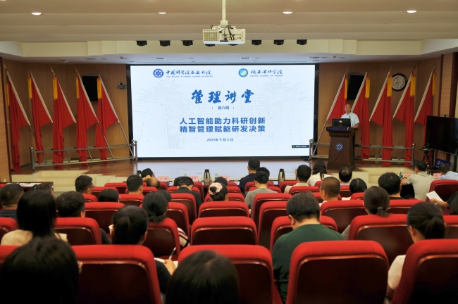 詹瑞在活动致辞中表示,2024年发起、已成功举办8期的“管理讲堂”今年将扩大到覆盖分省院系统单位,分省院系统同学“一堂课”,同答“一道题”,在学习中加强机关与研究所互动,在交流中增进机关对研究所的了解,不断巩固机关围绕系统“公转”的成效。詹瑞强调,人工智能作为引领新一轮科技革命和产业变革的战略性技术,正在深刻重塑科学研究范式和创新生态,为我们科研工作者提供了前所未有的创新工具和研究手段。面对新形势新机遇,我们作为国家战略科技力量的重要组成部分,必须主动识变、应变、求变,准确把握科技发展大势,不断提升自主创新能力。围绕分省院信息化工作,詹瑞提出三点希望:一是希望大家珍惜这次难得的学习机会,认真聆听、深入思考,积极主动与专家学者交流互动;二是希望大家结合各自研究领域,认真思考如何利用人工智能新技术、新方法破解科研难题,提升创新效能;三是希望大家立足国家需求,勇于探索人工智能在科研创新和管理决策中的新应用、新路径。