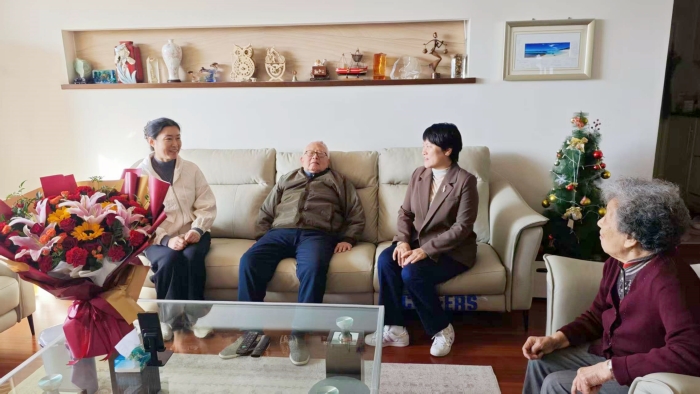 周玉珍详细询问了鞠躬院士的身体和生活状况,并与院士夫人促膝交谈,共同回忆夫妻二人当年义无反顾支援西北建设,数十年科研、教学生活的点点滴滴。鞠躬院士还开心的打起节拍哼唱起自己喜欢的歌曲。