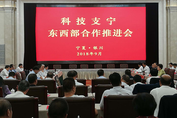 恰逢宁夏自治区成立60周年之际,9月13日,科技部、宁夏回族自治区人民政府2018年“科技支宁”东西部合作推进会在银川召开。会议深入贯彻落实习近平总书记视察宁夏时重要讲话精神,总结“科技支宁”东西部合作成效,签署新一轮东西部科技合作协议。科技部党组书记、部长王志刚,自治区党委书记、人大常委会主任石泰峰出席会议并讲话,自治区党委副书记、自治区政府主席咸辉主持会议。
