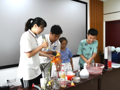 随后活动达到了高潮,科普老师运用洗洁精水、纸杯、香蕉、核桃、气球等一些日常生活中较为常见的材料,为孩子们表演了一场炫酷的科学实验秀。并以科学小助理的形式邀请现场的小朋友与科普老师互动,零距离接触科普实验器材和道具,亲身操作体验。每个实验后,科普老师都对实验现象作了详细的原理解说,让小朋友们感受科学的魅力,培养孩子们对科学探索的兴趣爱好,现场气氛十分活跃。活动过后在银川及自治区反响强烈。