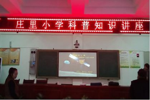 12月20日上午,在富平县梅家坪镇清明庙中小学,学校政教主任李向国主持陈中仁研究员科普报告会,郭治年校长和200名余名师生出席或参加临听报告会。报告会后,学生们提问能不能在月球上生活?中国什么时候能探测火星?陈中仁一一作答,并赠送书法作品“自强不息 积跬致远”给学校。
