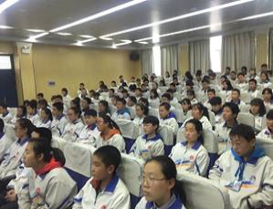 宝鸡市清姜路中学副校长王静新主持报告会,学校初二年级150多名师生临听报告。