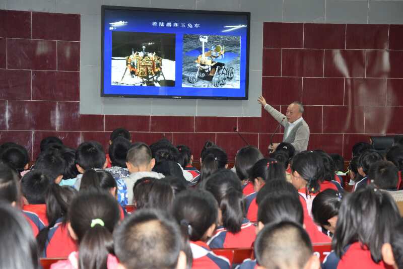 陈中仁研究员作为中科院西安光机所曾参与中国“探月工程”“嫦娥一号、二号”CCD立体相机研制工作的科学家,以“迈出地球摇篮,飞向月宫览胜”为题,向学校280余名同学和教师代表,讲述人类探索月球的起源,中国科学家们如何奋起直追而实现迈向太空的过程,探月“嫦娥工程”立项、研发拍摄月球全景CCD立体相机、干涉成像光谱仪的攻坚克难历程与趣事,及“嫦娥一号、二号”CCD立体相机圆满完成世界首幅月球全景照片和虹湾地区高清晰高分辨率照片的拍摄任务……听讲的老师、同学们激动不已,自豪不已,爆发出热烈的掌声……当演讲的PPT报告中插播的“嫦娥三号”升空及中国首次把着陆器和“玉兔号”月球车送到月球,及着陆器和月球车用各自携带的相机互相拍照,在月球虹湾地区的灰暗月面上,月球车“胸前”的五星红旗鲜艳夺目等画面出现时,极大地增添了同学们的民族自豪感和爱国情怀,激发了同学们对科学研究的热情和向往,对做出贡献科学家的崇敬。