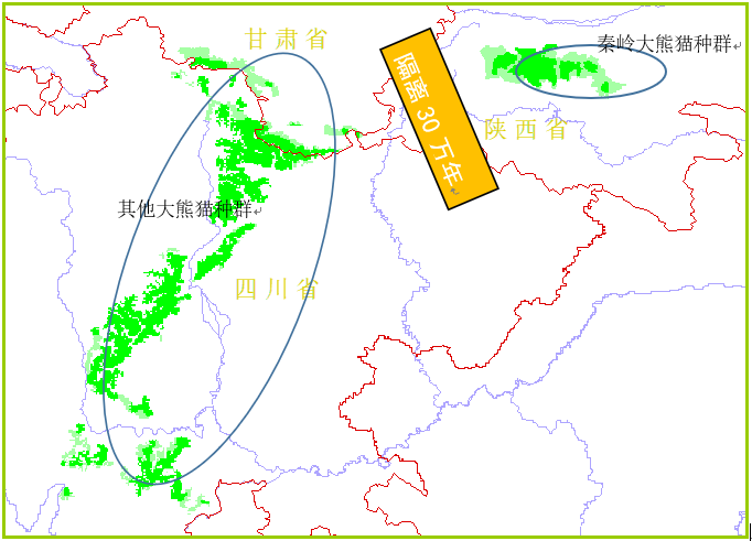 秦岭大熊猫与其他山系大熊猫位置示意图