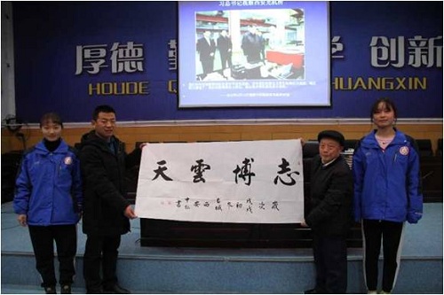 最后,陈中仁挥毫泼墨书写了“志博云天”书法勉励师生们,还代表中科院老科学家科普团西安分团为学校赠送了一套辞海和其他科普书籍。