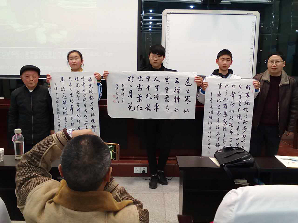 陈中仁向同学们赠送书法作品