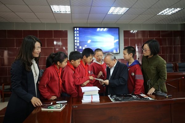 在互动环节,一些同学提出了诸如“最近发现宇宙中有如同地球一样的星球,有生命的动物吗?太空中人造卫星上的相加能看到我们学校吗?为什么有黑洞?......”陈中仁都一一详细解答了学生们提出的问题。陈中仁研究员还向提问同学赠送了自己的书法作品——“好好学习”、“全面发展”等勉励同学们努力学习,立志成才。