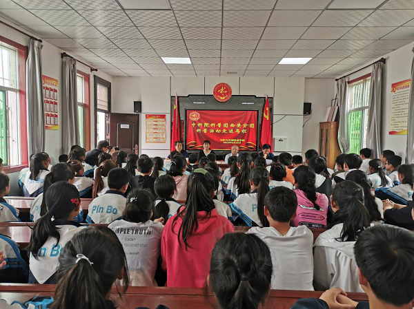 下午,陈中仁一行来到马栏九年制寄宿学校。在校长库玉龙主持下,学校党支部书记何西林向该校七年级和八年级近100名师生介绍了科普团专家。陈中仁作了题为“中国探月工程-迈出地球摇篮 飞向月宫揽胜”的科普报告。