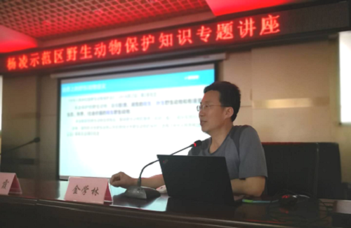 4月16日,金学林在西安市沣峪口为来自西安市级各县区、西咸新区的近300名干警作首场野生动物保护知识讲座报告,系统地普及了野生动物保护的意义、野生动物的辨识常识及陕西省重点物种的识别技巧等知识。随后,金学林还于4月22日、5月23日、6月4日为莲湖区政府相关人员110余人、碑林区市场监管局各工商所150余人及杨凌示范区100余人进行了野生动物保护知识讲座报告。