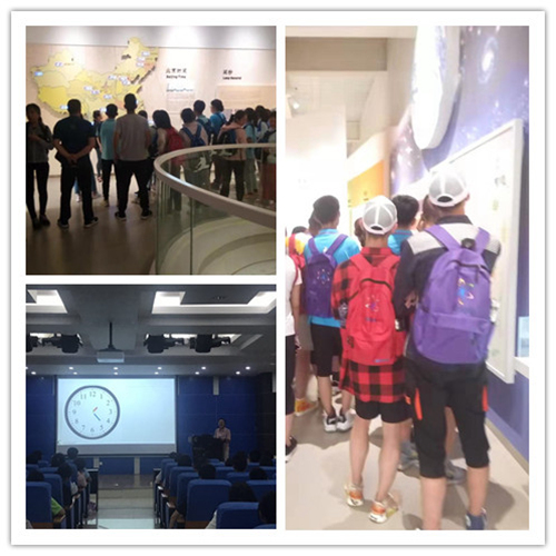 下午,参观团来到授时中心临潼本部,首先参观了时间科学馆,了解古今中外各式各样的计时手段和授时方法,也通过聆听讲解和实地感知,理解了高精度时间在生活和生产中的种种用途,对平时生活中习以为常的时间的重要性有了更加深入的了解。在授时中心发展史展厅,营员们从陈列的各种老长短波台的设备、文件和老照片中,体会到老一辈时间工作者在国外对我们技术封锁的情况下建设长短波授时台的不易和艰辛,对“自力更生,艰苦奋斗”也有了更深的体会。