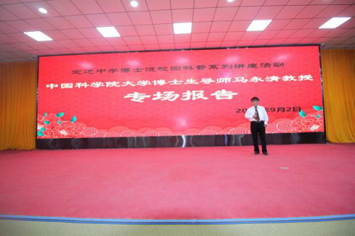 2019年9月2日晚,中科院老科学家科普团西安分团成员马永清教授为定边中学高一年级全体近900名师生作了题为“化感作用与根寄生植物”的专场科普报告。该报告是陕西省定边中学博士进校园科普系列讲座活动之一。