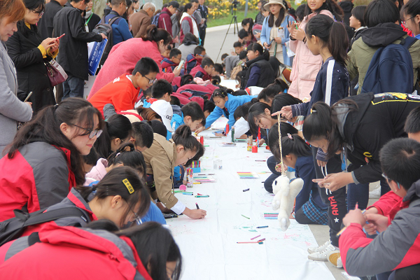启动仪式上,还邀请了2019年全国自然笔记大赛西北分赛区陕西省获奖者现场分享参与自然笔记的感受并为其颁发证书。启动仪式结束后,100余名学生现场共同绘制了一幅百米画卷,随后100余名学生分成三组,参加了3位自然导师带领的以“秋天的密码”为主题的自然观察活动,在自然导师的引导下,用画笔记录下大自然的美丽瞬间。