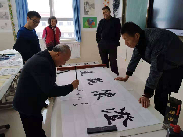 陈中仁为富平县华朱初中现场泼墨赠送励志书法