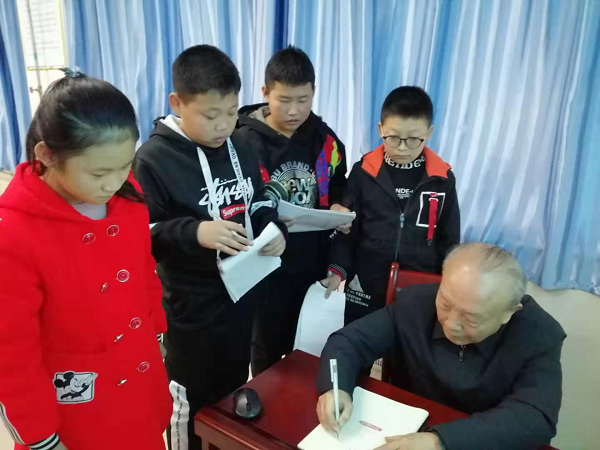 10月17日上午,陈中仁为张桥镇中心小学100余名师生作报告,校长马欢、副校长田文礼主持。当天下午,陈中仁为刘集镇施家小学150余名师生作报告,校长贺盼、副校长马丽主持。在两所学校,陈中仁以 “弘扬“两弹一星”精神,实现中华民族复兴”为题讲述了我国“两弹一星”研究的经过及产生的“两弹一星”精神内涵,介绍钱学森、郭永怀、钱三强的海外求学经历、科学上取得的杰出成就与家国情怀报效祖国的故事,以及西安光机所老一辈科学家为核爆试验做出贡献的感人事迹,勉励同学们努力学习好文化课,为实现中国梦积蓄力量。同学们争着提问,如黑洞是怎样形成的,中国何时在月球设立空间站等,陈中仁旁征博引予以具体解答。两场报告会后,陈中仁为两所学校赠送了30多幅墨宝,勉励师生们志存高远、报效祖国。