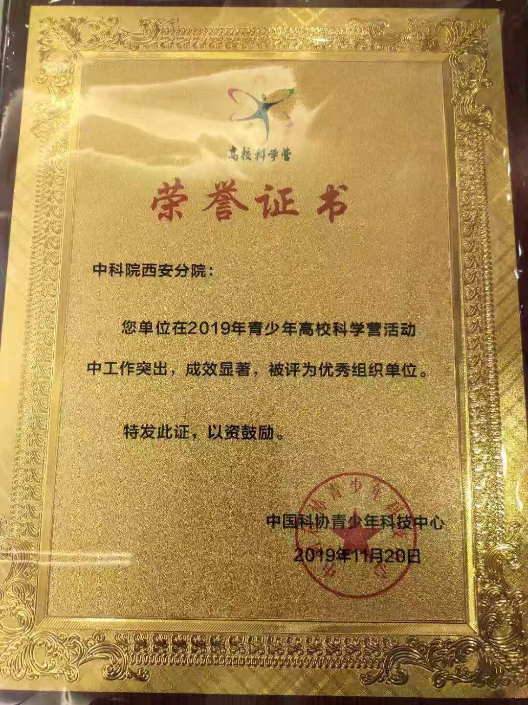 11月20日,由中国科协青少年科技中心组织的2019年青少年高校科学营总结研讨会在厦门举行。因在2019年青少年高校科学营活动中成绩突出,西安分院与清华大学、北航、上海交大、厦门大学等十余家知名高校一起,被授予“2019年青少年高校科学营活动优秀组织单位”称号,并颁发荣誉证书。