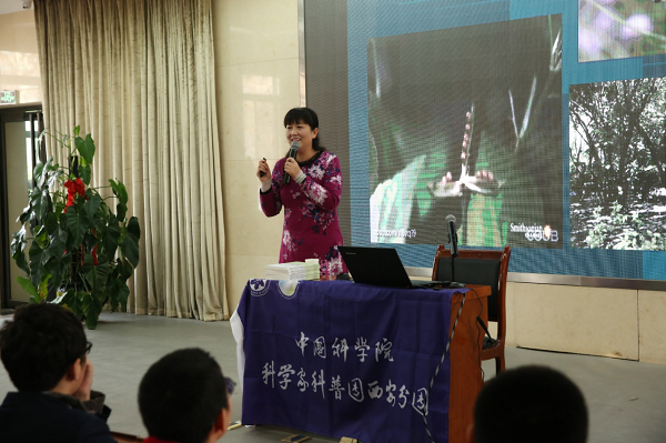 在西安市第二十六中“名校+”教育联合体2019年理化生教研组学科节上,祁云枝研究员以 “植物神奇的生存智慧”为题开讲。她用深入浅出的讲述和拟人化的比喻语言,配上植物漫画幻灯片,讲述植物生存和适应大自然的“智慧”与植物习性的多样性,如会关虫子禁闭的马兜铃、会吃虫子的植物、会弹射种子的豆荚、草原上如同眼镜蛇一样的开花植物、像炮弹一样会喷射种子的铁炮瓜等。祁老师还带了她编写的新著《低眉俯首阅草木》作为答问奖品和同学们互动,现场气氛热烈。这场生动有趣的报告让同学们领略了植物生存智慧的奥妙,激发了他们对植物科学的浓厚兴趣。听讲的老师们感慨地说:“我们和孩子们都沉浸在神奇的植物之旅,收获很多。”