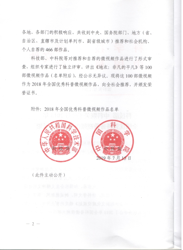 近日,由科技部、中国科学院联合举办了以“科技创新强国富民”为主题的2018年全国科普微视频大赛活动落下帷幕,经形式审查、公众评选、专家评审等环节,由我院选送,动物研究所制作的《美猴王夏洛帝》在全国466部作品中脱颖而出,被评为2018年全国优秀科普微视频作品,这也是我省唯一入选作品。同时,探讨羚牛生存空间,讲述人与野生动物(羚牛)的环境冲突,警示公众爱护野生动物主题的《何处是我家》也获得了第五届中国科学院科普微视频创意大赛优秀奖。