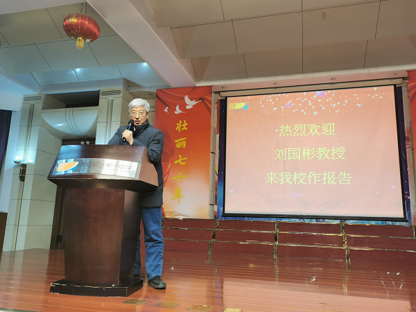 刘国彬教授说大家不要太看重名利,做事情要注重过程,不要注重结果,功夫到了收获自然会来到,无欲则刚,名利心重往往不一定能成功。要尊敬老师,爱护老师,努力学习来回报老师的爱心,自己永远记着初中赵惠敏老师的关心和帮助。要孝敬爸爸妈妈,周末回家给父母倒杯水,帮父母拖地,要理解父母的辛苦。自己刚高中毕业,母亲就因病去世,大学还没有毕业,父亲也离开人世,自己没有机会回报父母的养育之恩,是人生最大的遗憾。今天大家的学习条件比过去好多了,但同学们还是要以感恩的心去学习和生活,因为这一切都是父母和老师为我们创造的,高新一中这么优秀的管理者和老师,这么优越的学习环境,是同学们实现梦想的基础。将来要敬业,不论从事哪个行业,记得今天的努力读书是为了以后有美好的人生,也能报效国家。对于未来的职业,建议同学们做科研工作,相比从政和经商难免会枯燥乏味,不像当官有面子,也赚不到多少钱,但在科研过程中取得重大突破,用科技成果促进国家发展强大的时候,那种满足感是金钱和官位无法代替的,是无比幸福的!做科研工作,推荐大家到中科院工作,因为中科院是国家级研究机构,中科院的每个研究所都是国内最好的研究机构,你们将来可能会出国深造,虽然说科学没有国界,但科学家有自己的祖国,我自己出国深造最后还是要求回国,几次放弃留在国外的机会,就是感觉在自己的土地上做工作踏实,用今天的科学成就回报家乡和国家,也足以告慰父母!
