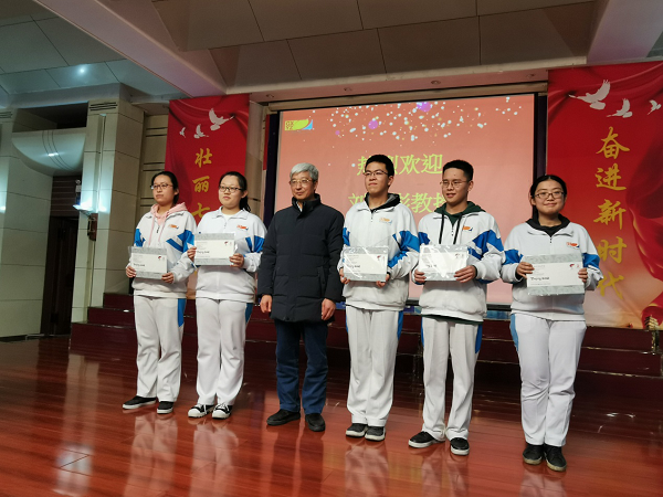 刘国彬教授的报告风趣幽默,并与主持人和老师互动提问。有一位同学写了一首词献给刘教授,主持人现场激情朗诵。刘教授动情的说专门给写信的几位同学准备了一份独特的礼物,自己是2008年北京奥运会火炬手,获赠了印有自己照片的邮票,今天赠给这几位同学,表彰他们给自己写信,勉励他们热爱科学。在高新一中校领导和同学们见证下,刘教授亲手把珍贵的邮票送给每一位同学,语重心长地鼓励他们要爱老师,爱父母,爱我们的祖国。 整场报告获得师生们的热烈欢迎,鼓掌声多次响起。最让我们感动的是,刘教授说自己上小学时,有一次放学后跟同学一起玩耍,回家晚了,看见妈妈在厨房做饭,就给妈妈说我回来了,妈妈回头笑着答应他,生病的脸上布满用柴火和煤炭生火的黑印子,他突然心里特别难受,觉得妈妈辛苦养育自己,又要带病干活做饭那么累,而自己还在外面玩的不回家,心灵震动极大。从那以后,自己放学后再也不贪玩了,赶快回家帮妈妈做饭,有空就学习,而当自己有条件报答父母的时候,却永远没有妈妈了。