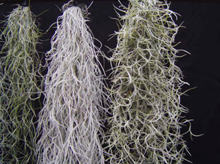 为了适应不同的环境,凤梨科植物的外型与习性千变万化。其中有许多种类都是借住在大树的枝干上,例如空气凤梨属的种类。空气凤梨是凤梨科铁兰属植物,别名气生铁兰、空气草,是地球上唯一一类完全生活于空气中的植物,铁兰属植物,原产美国南部和拉丁美洲,有550多种,大多分布在海拔1000~3000米阳光充足的地带,是一种耐旱喜光的植物,生命力很强,果实成熟时会裂开,带有冠毛的种子便随风飘扬,落在合适的地方后就开始萌芽生长,它们主要是利用叶子上的鳞片来吸收水分及养分,根的主要作用是固着植株。我们开头提到的可以做窗帘的是铁兰属中的松萝凤梨也叫老人须,外型看似松萝地衣,栽植时只需要悬挂在空中,以喷雾的方式提供水分与肥料,就可以生长得很茂盛,所以聪明的人们就用他们来制作成窗帘来装饰我们的生活环境。