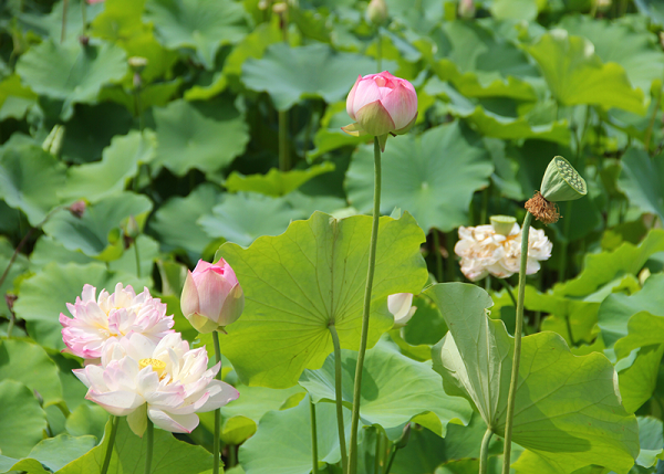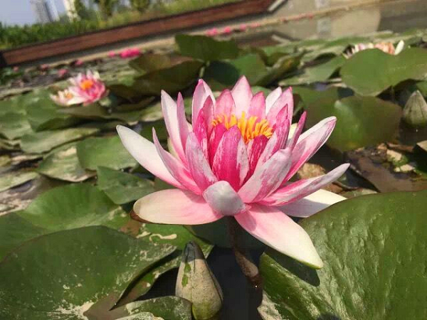 此次展区主要集中在水景园,共计展出水生植物500余种(含品种)。其中,包括睡莲100余种,新优荷花260余种,王莲3种(朗伍德、克鲁兹、亚马逊),此外还有千屈菜、梭鱼草、水罂粟、香蒲、荇菜等百余种水生植物。同时,还将展出盆栽荷花1200余盆。整个花展共分为盆栽展区、品种展区、塘栽展区、科普展区四大区域,通过与园区环境相结合的手法进行全方位展示,利用园区自然的水系、特色景观与清涟曼妙的水生植物的巧妙组合,打造出一池动人心弦的夏日美景。