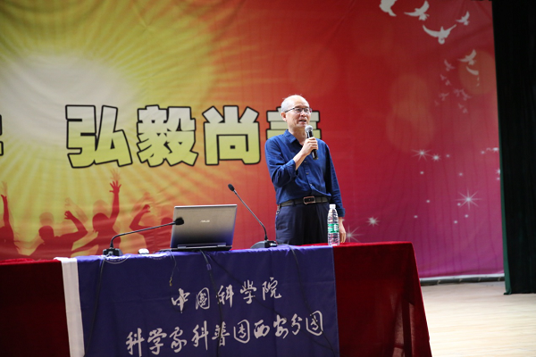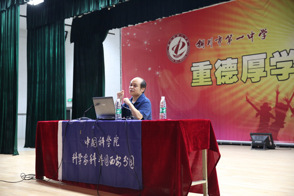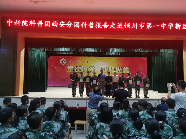 8月23日晚,中国科学院老科学家科普团西安分团专家李孝辉、马齐、王开锋、祁云枝等四位研究员在常务副团长、秘书长、中科院西安分院科学传播办主任张行勇高级记者带领下,赴铜川市第一中学,为参加军训的650名高一新生作科学报告及赠书,该校教育处主任、团委书记郝军宁主持报告会,校党委委员、副校长许天成和办公室副主任付雷及高一年级部分教师出席。