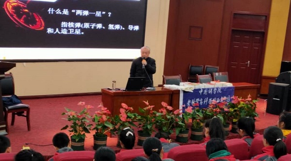 10月29日,中科院老科学家科普巡讲团西安分团团长、中科院西安光机所陈中仁研究员应西安市育才中学邀请,为300多名学生航天爱好者作题为“弘扬‘两弹一星’精神,实现中华民族伟大复兴”科普报告。该校航模队负责老师张晟主持报告会。