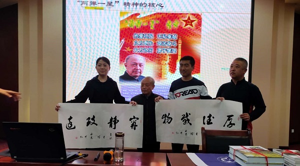 钱学森、钱三强放弃在国外的优厚待遇回国而在荒漠戈壁滩吃苦忘我工作,邓稼先、郭永怀为找到试验直接材料和保护资料而舍身忘死......他们走了,留下的是祖国和平发展的科技成就支撑、保障,用生命和鲜血凝聚的“两弹一星”精神,一直激励后来者为中国强盛而代代奋斗,创造更加举世瞩目的中国奇迹。陈中仁讲述的这些科学家的感人故事,使同学们深受感动。