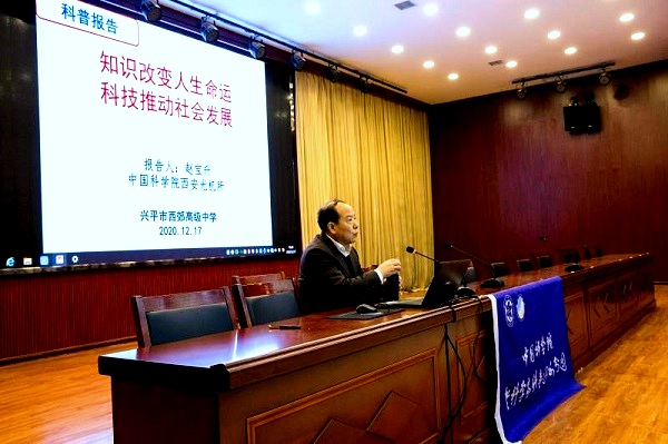 12月17日下午,中国科学院西安光学精密机械研究所赵宝升研究员为兴平市西郊高级中学的师生们送去了一场以“知识改变人生命运,科技推动社会发展”为主题的报告会。