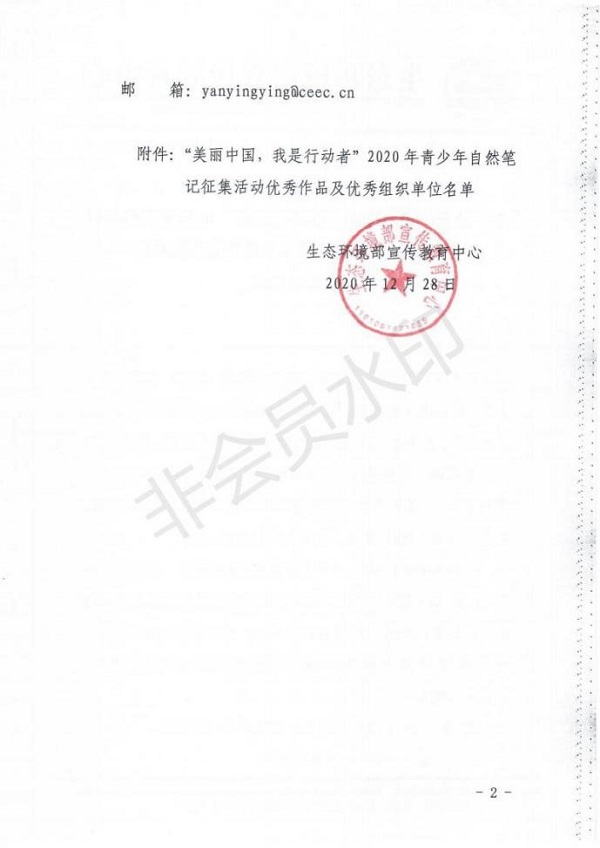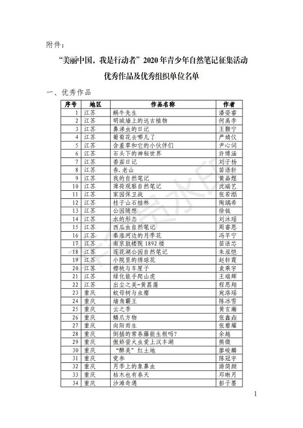 近日,从生态环境部宣传教育中心获悉,为倡导人与自然和谐共生,推动生态文明理念融入学校教育、家庭教育和社会教育,由环境保护部宣传教育中心与中国儿童中心共同举办的“美丽中国,我是行动者——2020年青少年自然笔记征集活动”结果揭晓。陕西省西安植物园被评为优秀组织单位。