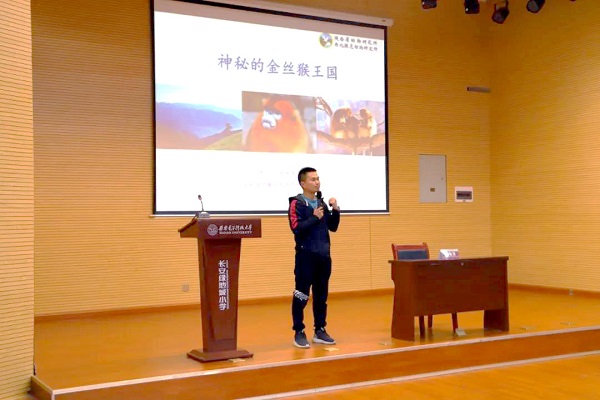 科普分团专家陕西省动物研究所(西北濒危动物研究所)副研究员赵海涛博士以题为“神秘的金丝猴王国”,结合自己十余年来一直从事秦岭金丝猴的行为生态与保护生物学研究工作成果与体会,通过通俗易懂的语言、风趣幽默的表达,生动的图片和视频,为学生们讲述秦岭金丝猴的习性以及种群之间的“离恨情仇”、以及秦岭生态环境的变化,使学生们对金丝猴社群活动与生活环境的关系有了“了解认识金丝猴行为生态习性与环境关系就是为了人们了解自身与环境的依存关系”的认识,体会到保护野生动物的栖息地生存环境也是为了人类明天的生存与发展。