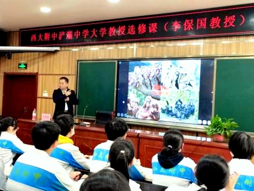 4月15日,中科院科学家科普团西安分团、西北大学博士生导师李保国教授为西大附中浐灞中学高一年级师生作《从金丝猴社会看学习的乐趣》科普报告。