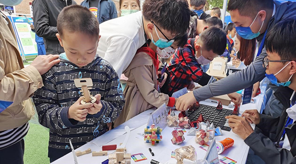 本年度主场示范活动特设“科学院主题展区”,分省院系统的中科院西安光学精密机械研究所、中科院国家授时中心、中科院地球环境研究所、陕西省动物研究所、陕西省西安植物园、陕西省微生物研究所、陕西省生物农业研究所参加活动,布展内容围绕天文、地质、光学、生物、深空等特色学科,内容包含秦岭生物多样性保护、秦岭种质资源保护和利用、航天主题科普体验、可信时间认证体验、光学科普、古气候研究方法普及、秦岭野生动物分布特点、秦岭特有大型真菌展、秦岭特有植物标本及植物新品种展示等内容展项。另外,还设置了光学小实验、化石探索、触摸北京时间、飞行器体验等互动体验环节。