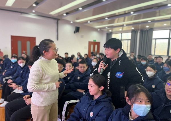 在近距离聆听科学家的讲座后,同学们获得了与科学家面对面交流的机会。在报告会后的提问互动环节,许多同学举手提问,刘娅一一回答了数位同学提出的好奇问题,肯定并鼓励同学们对于科学的探索,全场不时响起热烈的掌声。