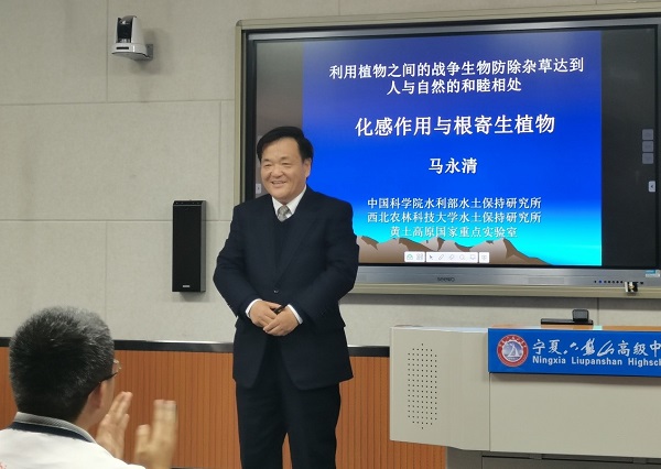 3月23日, 中科院老科学家科普团西安分团专家马永清研究员应邀,为宁夏银川六盘山高级中学师生作了题为“化感作用与根寄生植物”的科普报告。