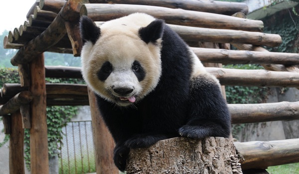 陕西周至楼观台野生动物保护中心饲养的秦岭大熊猫 。张行勇摄