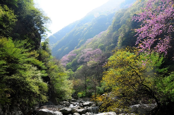 秦岭国家植物园田峪河谷地貌与植被景观。 张行勇摄