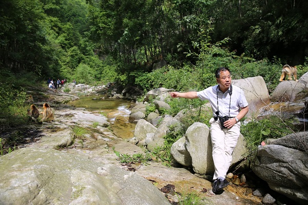 “秦岭猴王”——秦岭金丝猴研究专家李保国与秦岭金丝猴。 张行勇摄